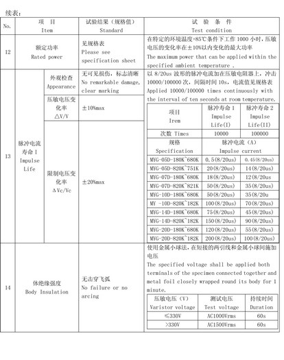 壓敏電阻(氧化鋅)